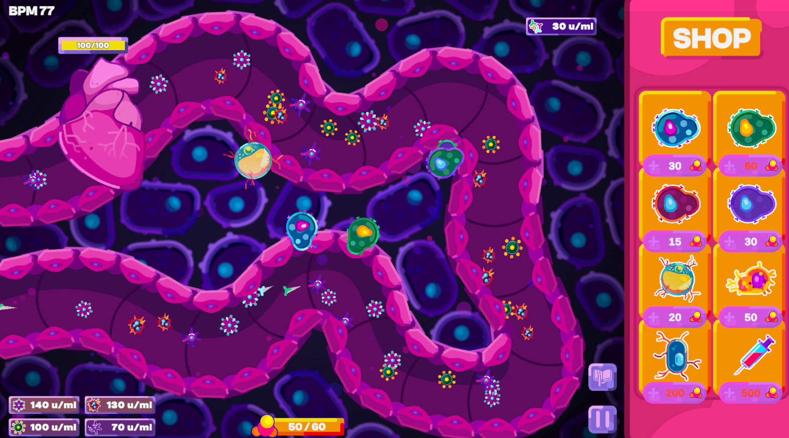 A tower-defense game where you defend the bloodstream from invading viruses using specialized cells.